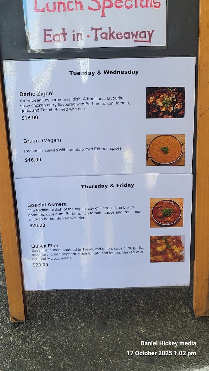 Beef, lightly battered prawns, lettuce, tomato, onion, cheese, Betty's special sauce