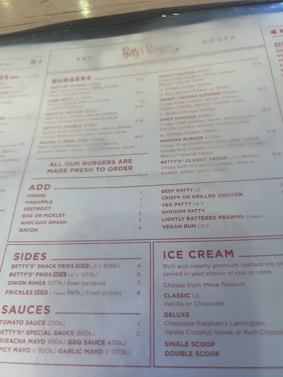 - Classic Burgers: From the mouthwatering Classic Beef, featuring Betty's unique special sauce, to the guilt-free Bare Betty wrapped in lettuce, each option balances flavor with quality.